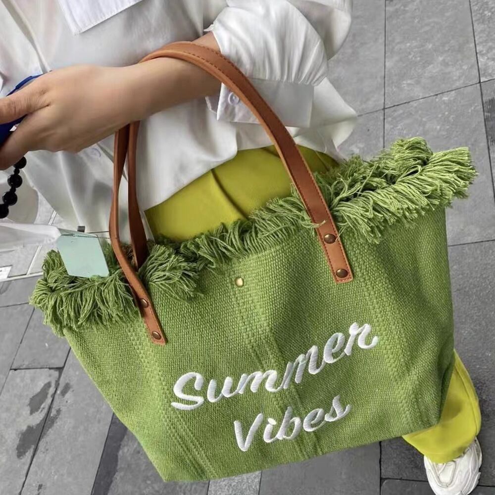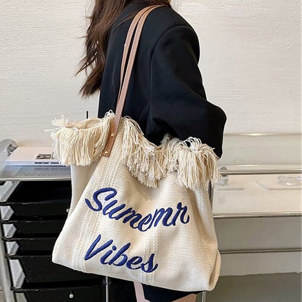 おしゃれ英字ロゴ 肩掛けかばん レディース ビーチバッグ 手提げバッグ カジュアルマザーズバッグ 大きめかばん 韓国風鞄