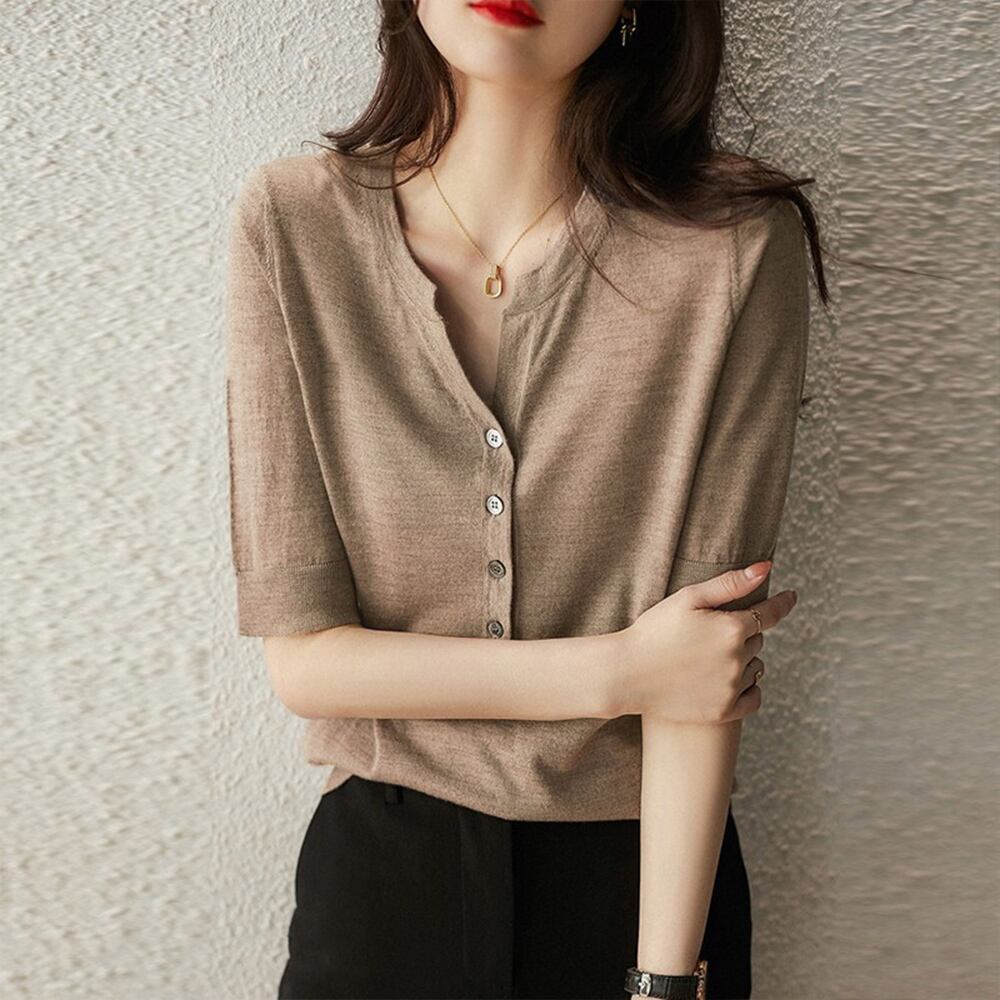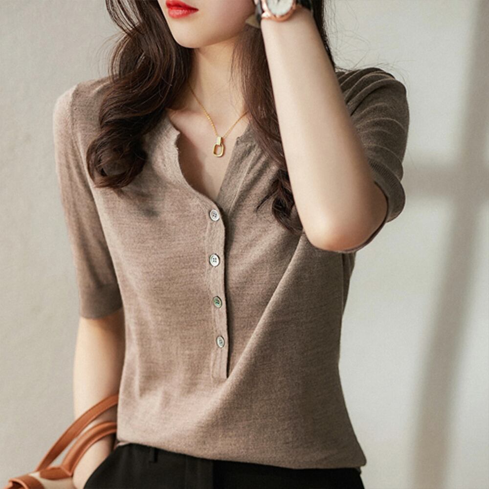 ハーフボタンデザインは大人可愛いサマーニットです