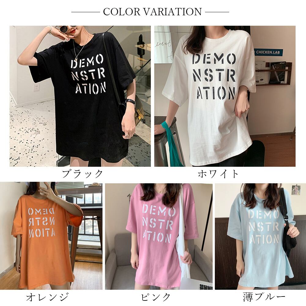 ロング ロゴtシャツ レディース 半袖 カットソー 体型カバー