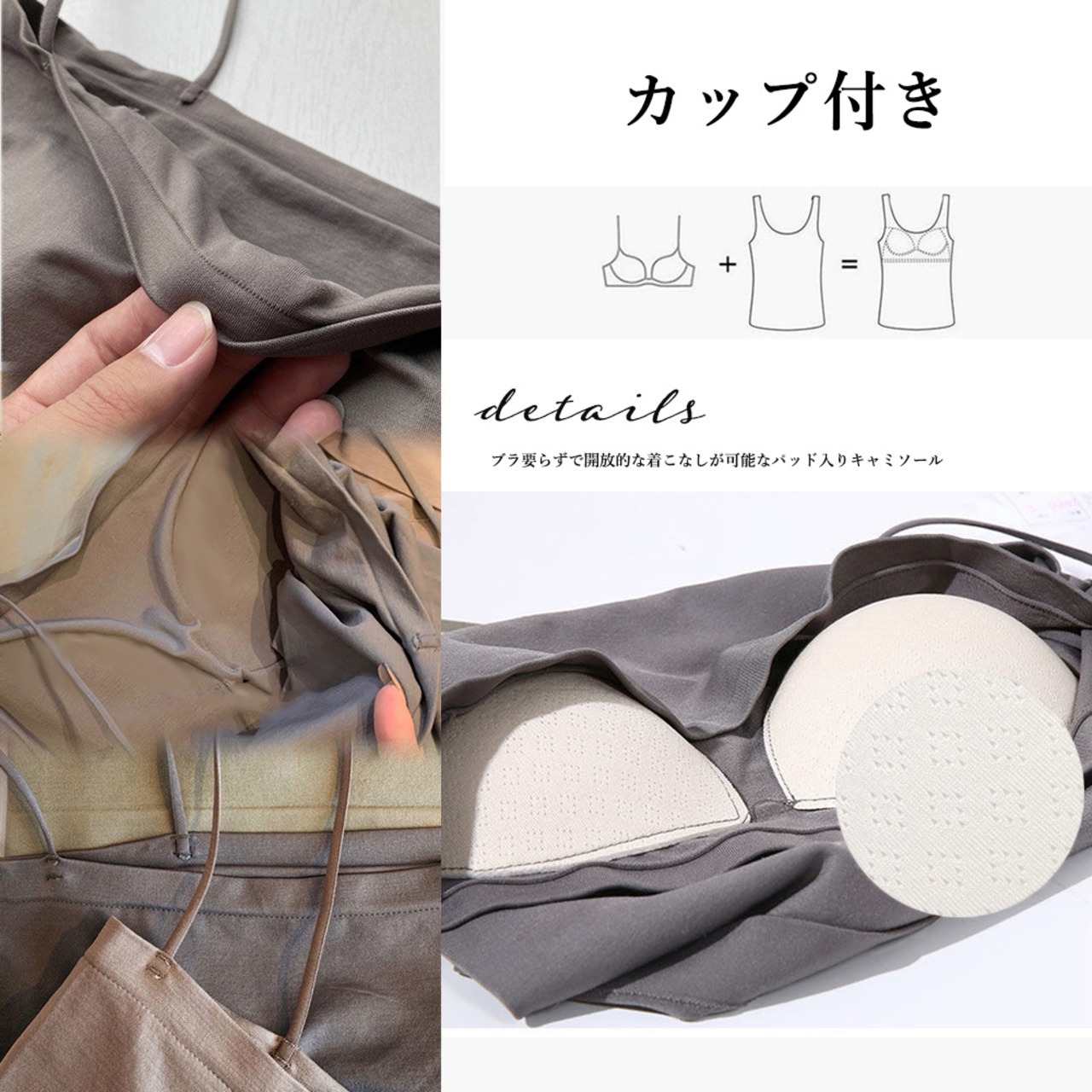 ブラ要らずで開放的な着こなしが可能なパッド入りキャミソール