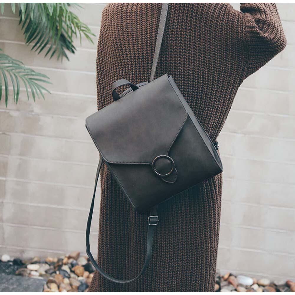 スタイリッシュなリング金具がおしゃれなスクエア型かぶせリュックサック