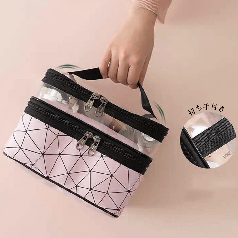 2層構造 化粧ポーチ 小物入れ 旅行お泊りポーチ ブラシポケット付きバニティポーチ 小物入れ トラベルポーチ 持ち手付き