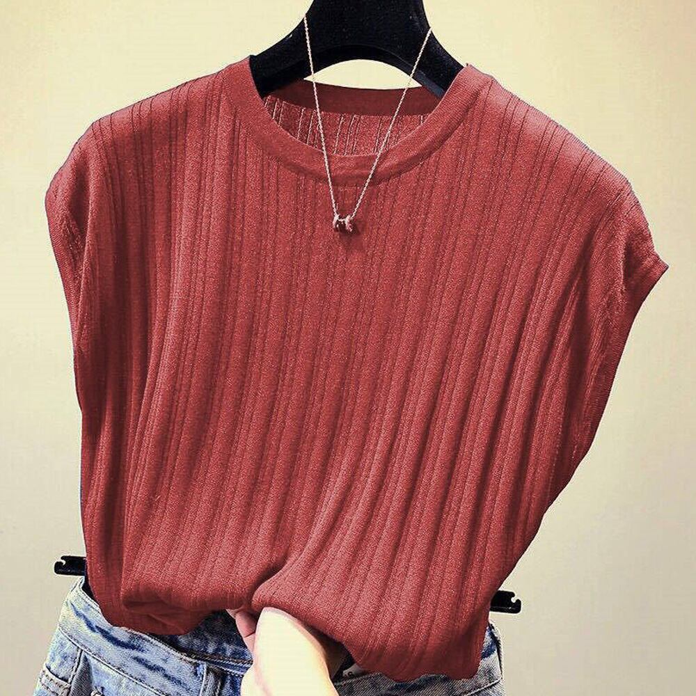 オフィスカジュアル 夏トップス 着やせ シンプルリブニット
