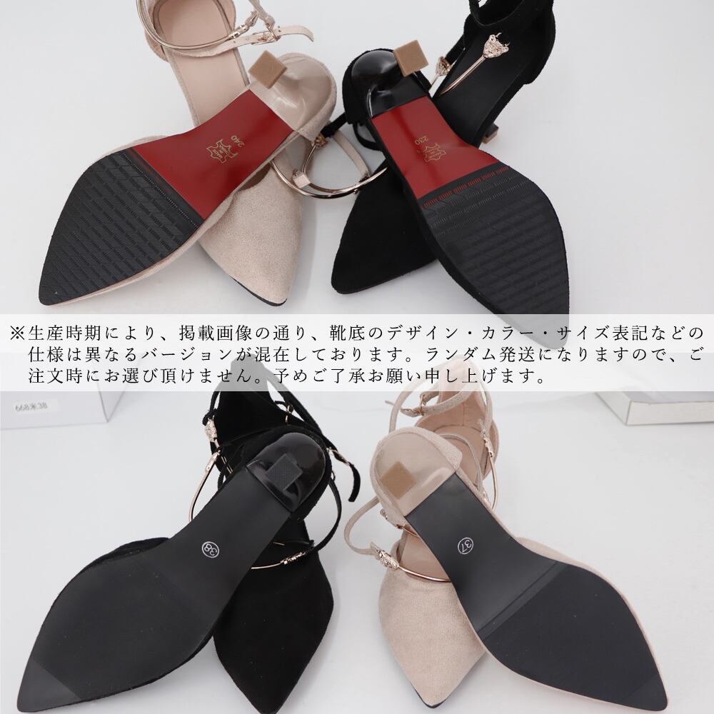 滑らかなスエード調生地で高級感を醸し出し、シルエットを追求した究極の美脚ダブルストラップパンプス