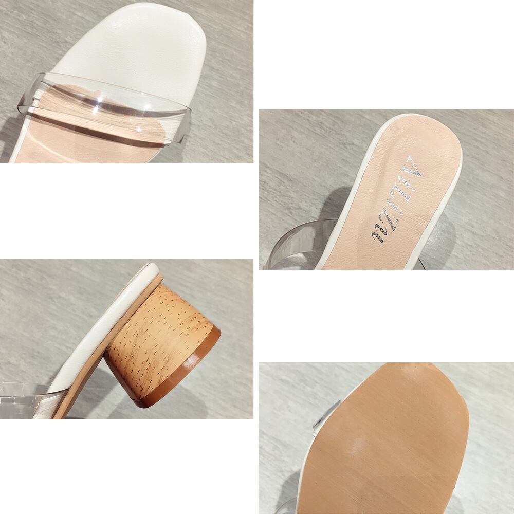アッパーのクリアなベルトで夏らしいシアー感を演出したサンダル