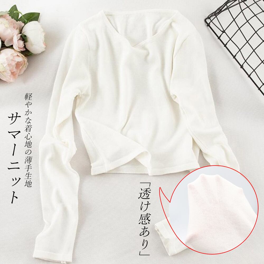 サマーニット トップス 長袖 へそ出し トップス レディース 夏 無地