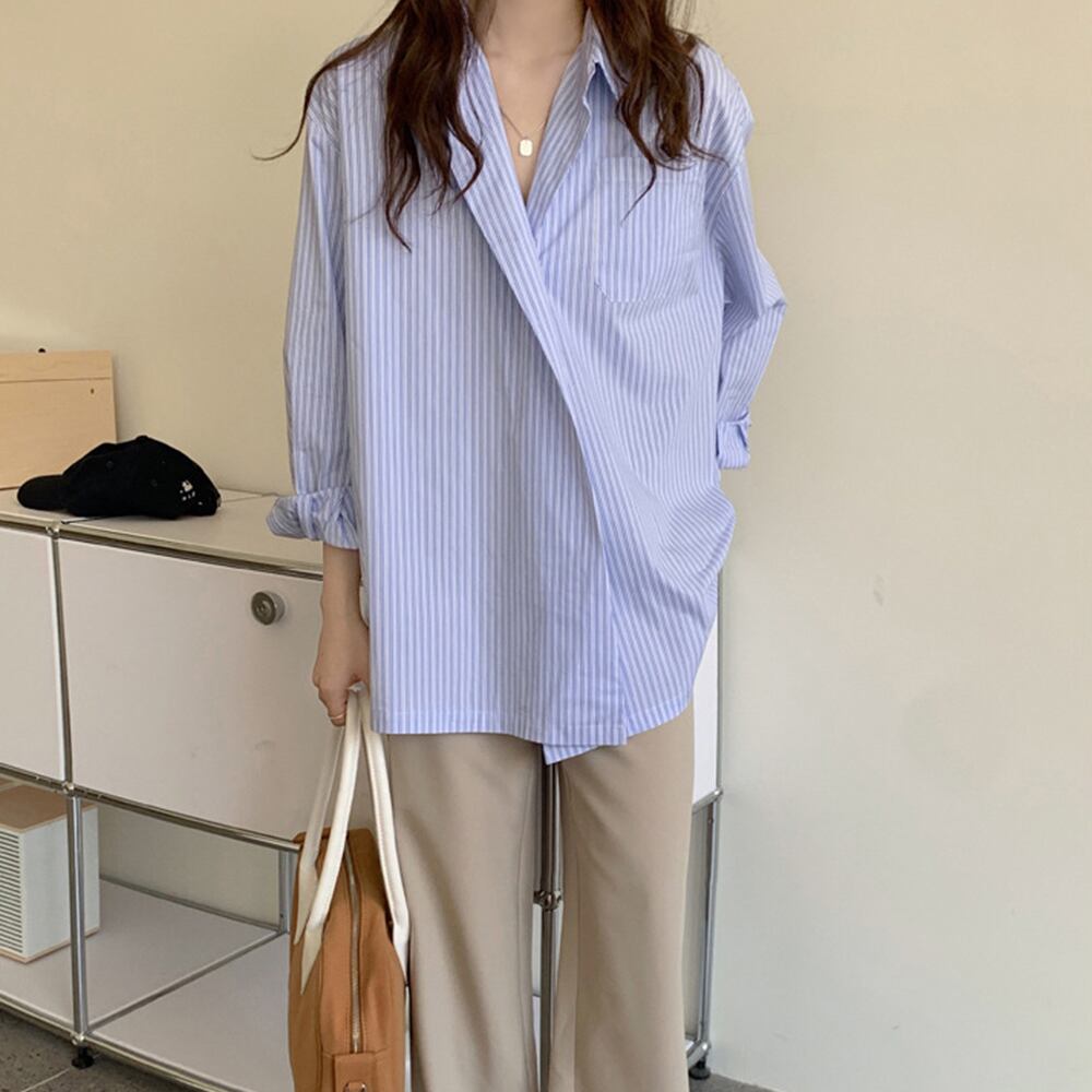 ストライプ柄 シャツ 長袖 ロングシャツ
