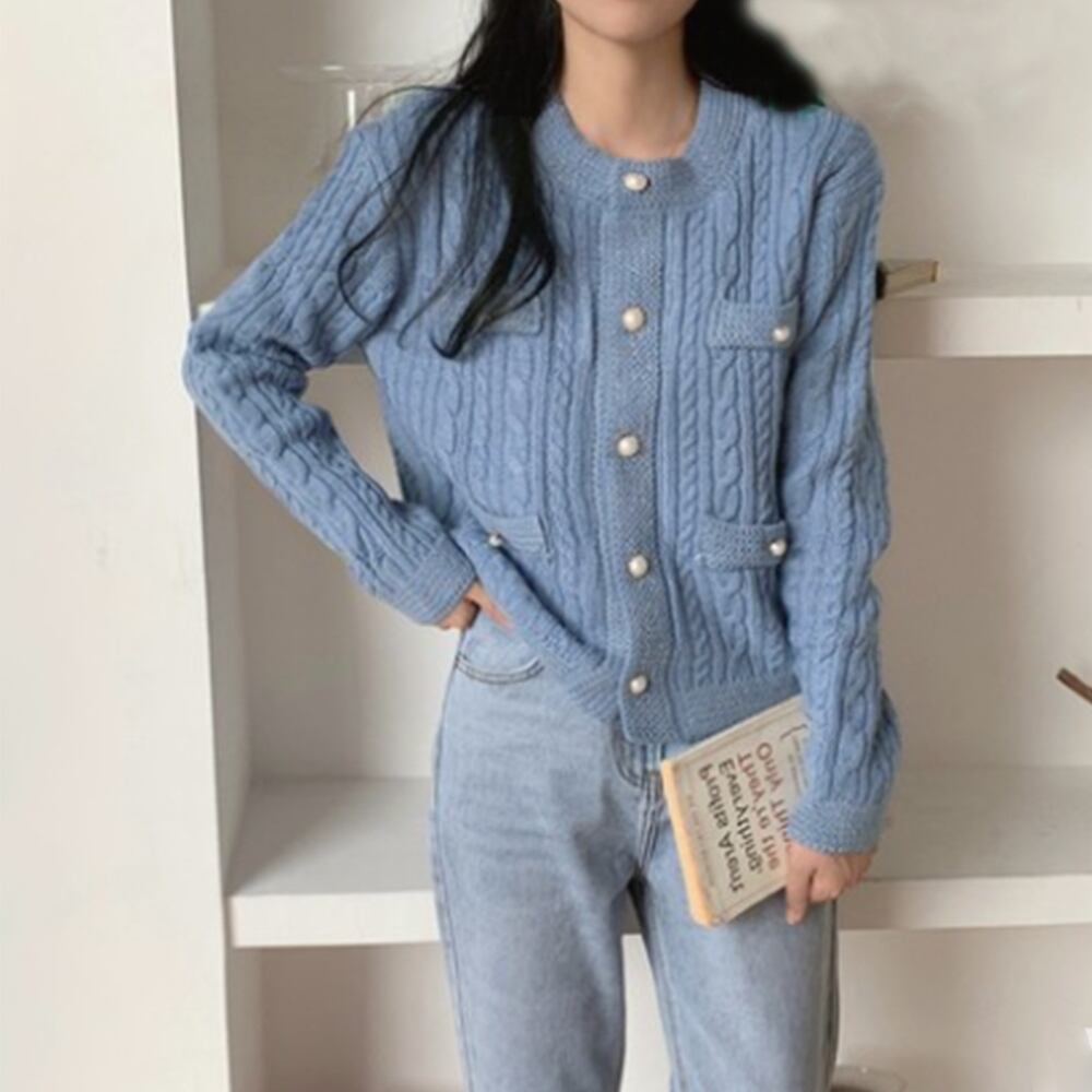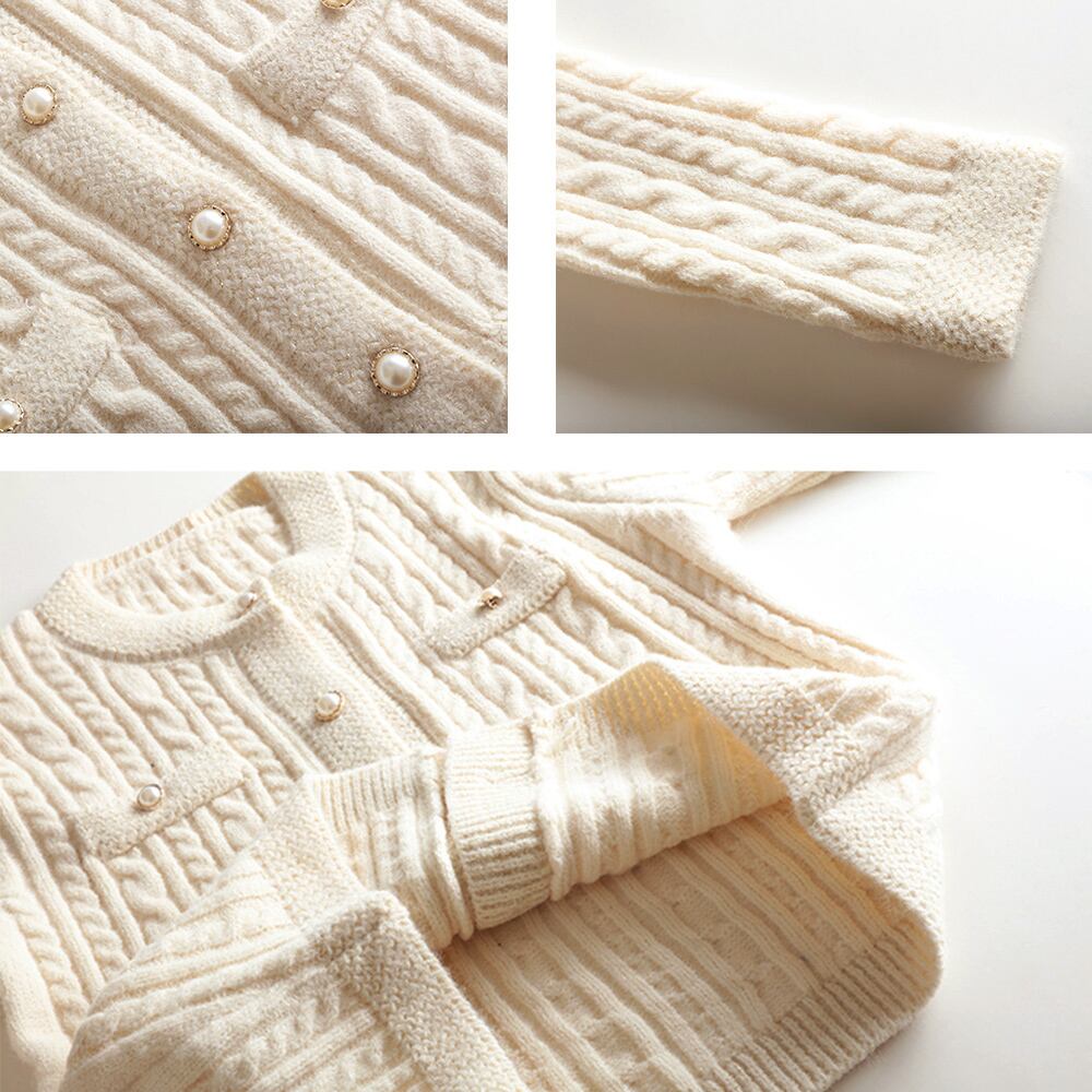 ショート丈 ニットトップス 長袖 レディース フェイクパールボタン 前開き ニットセーター おしゃれ アウター 韓国