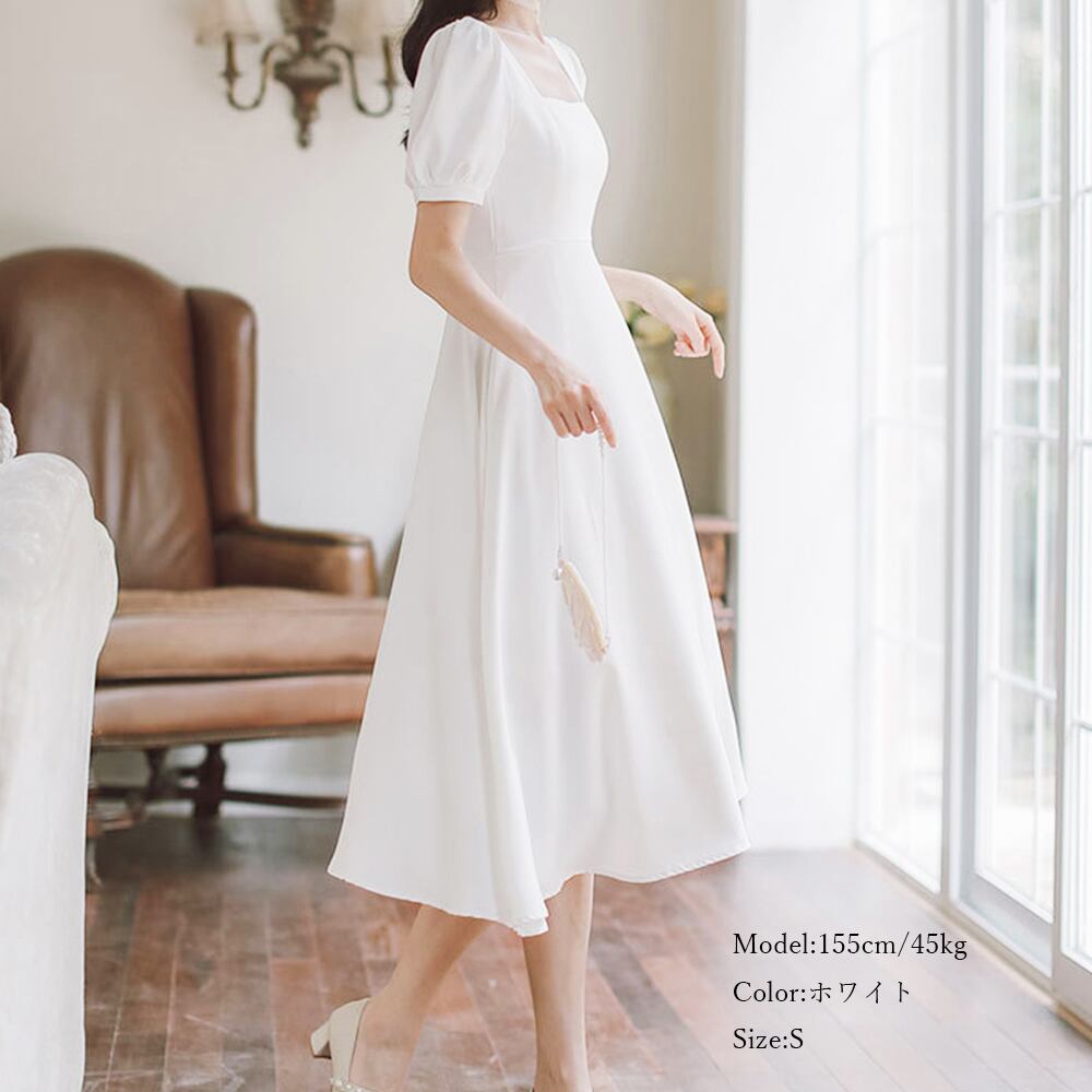 ワンピース レディース 体型カバー ポケット付き オフィス スクエアネック オシャレ フェミニン ファスナー付き