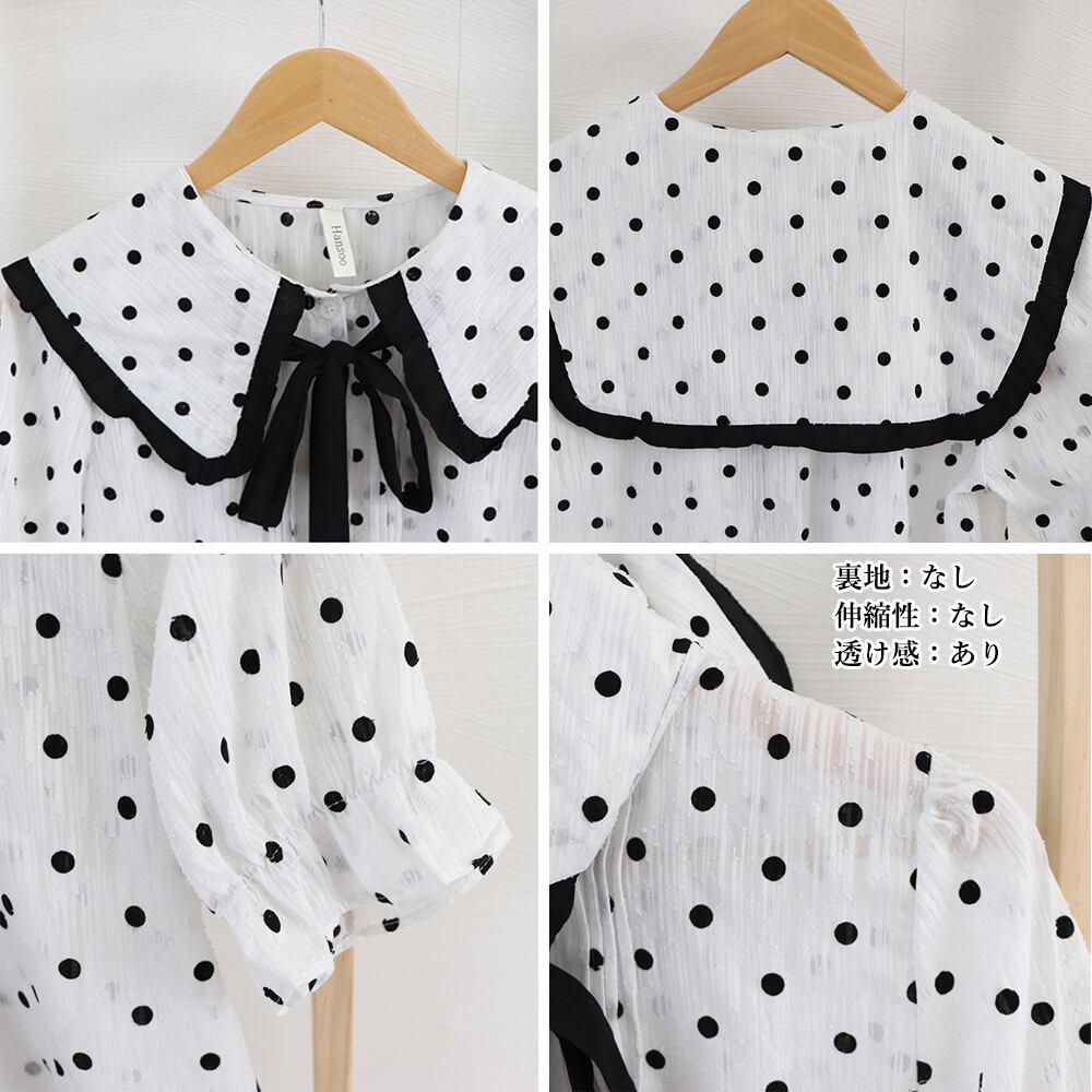可愛い セーラーカラーブラウス 水玉シャツブラウス 半袖 シフォンブラウス リボンタイブラウス 春夏秋 袖フリルレトロ風