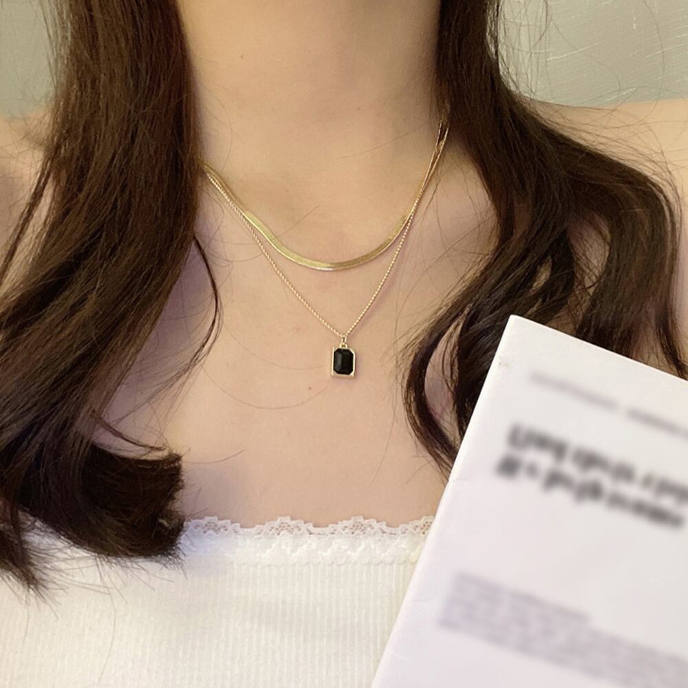 太めのスネークチェーンと、極細チェーンの2連ネックレス。