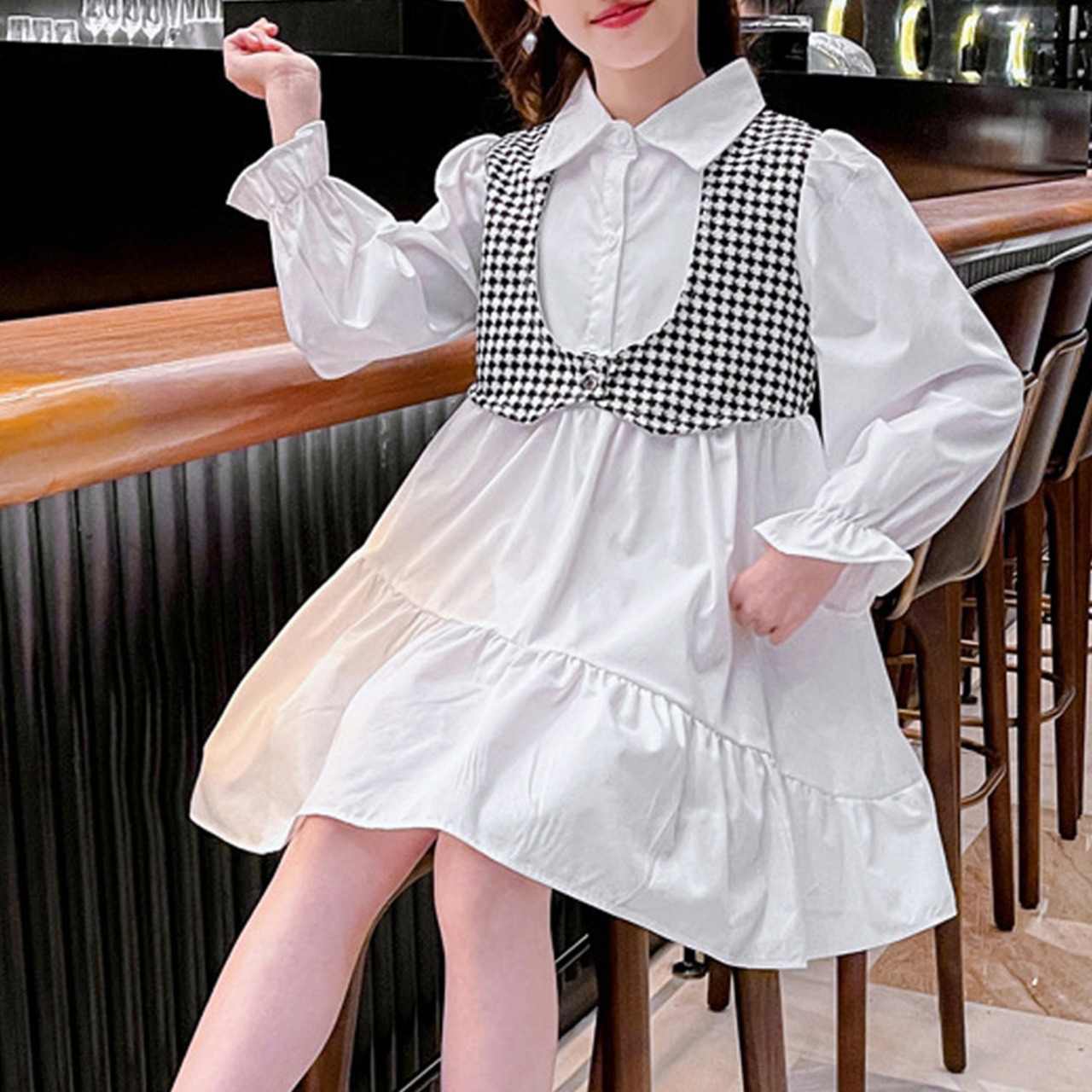おしゃれな女の子用ドッキングデザインシャツワンピース 。