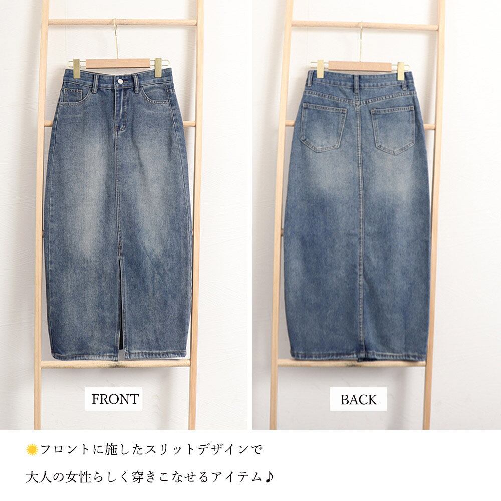 デニム タイトスカート フロントスリット