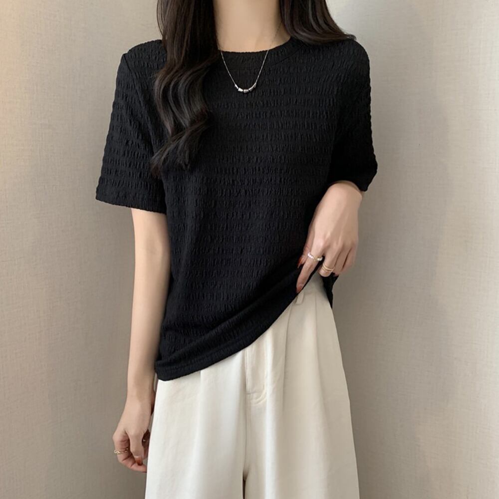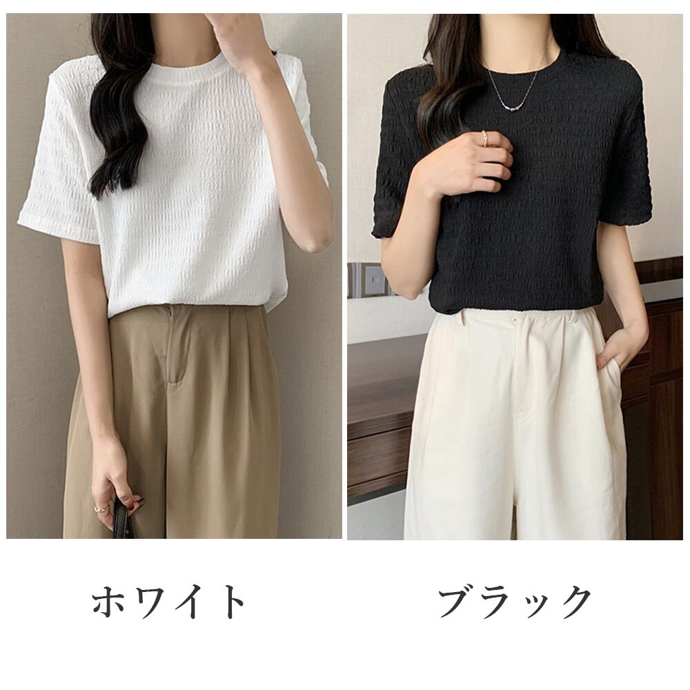 韓国ファッション 半袖 トップス 大人カジュアル シンプル Tシャツ 着回し 春夏カットソー ラウンドネック ベーシック