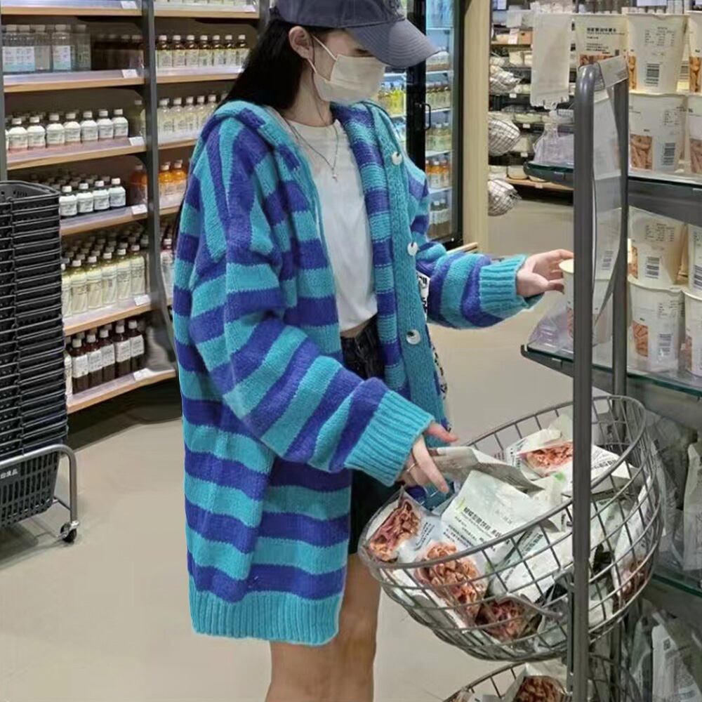 レディース ニットアウター フード付き ドロップショルダー 秋冬 長袖 カーディガン 中厚手 かわいい ニット羽織