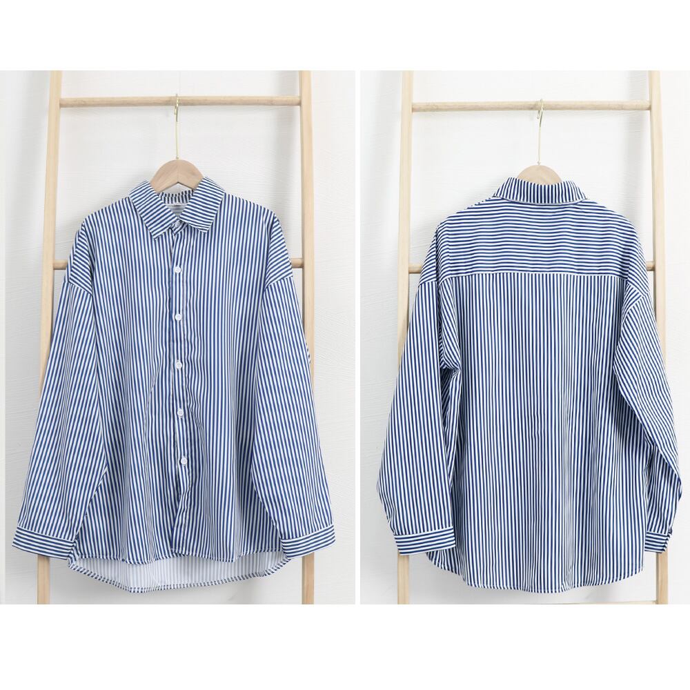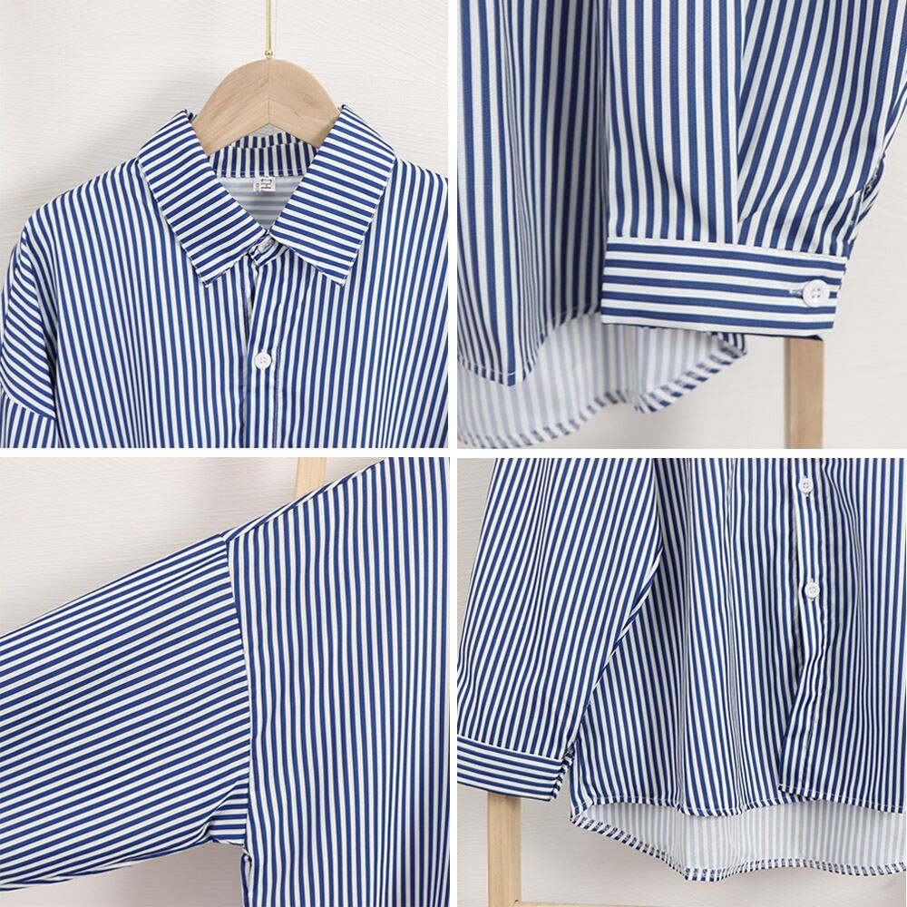韓国ファッション ゆるシャツ大人女性 縞模様シャツ羽織り