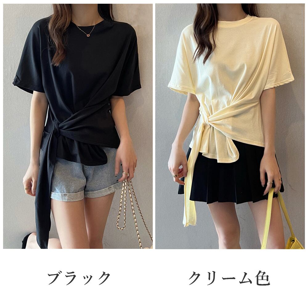 お腹周りの結びは魅力的なアシンメトリーデザインtシャツ