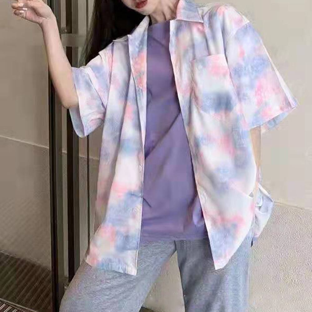 オーバーサイズ 半袖シャツ 絞り染め クールトップス ゆったり サマーカーディガン長袖 体型カバーシャツブラウス 羽織り