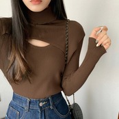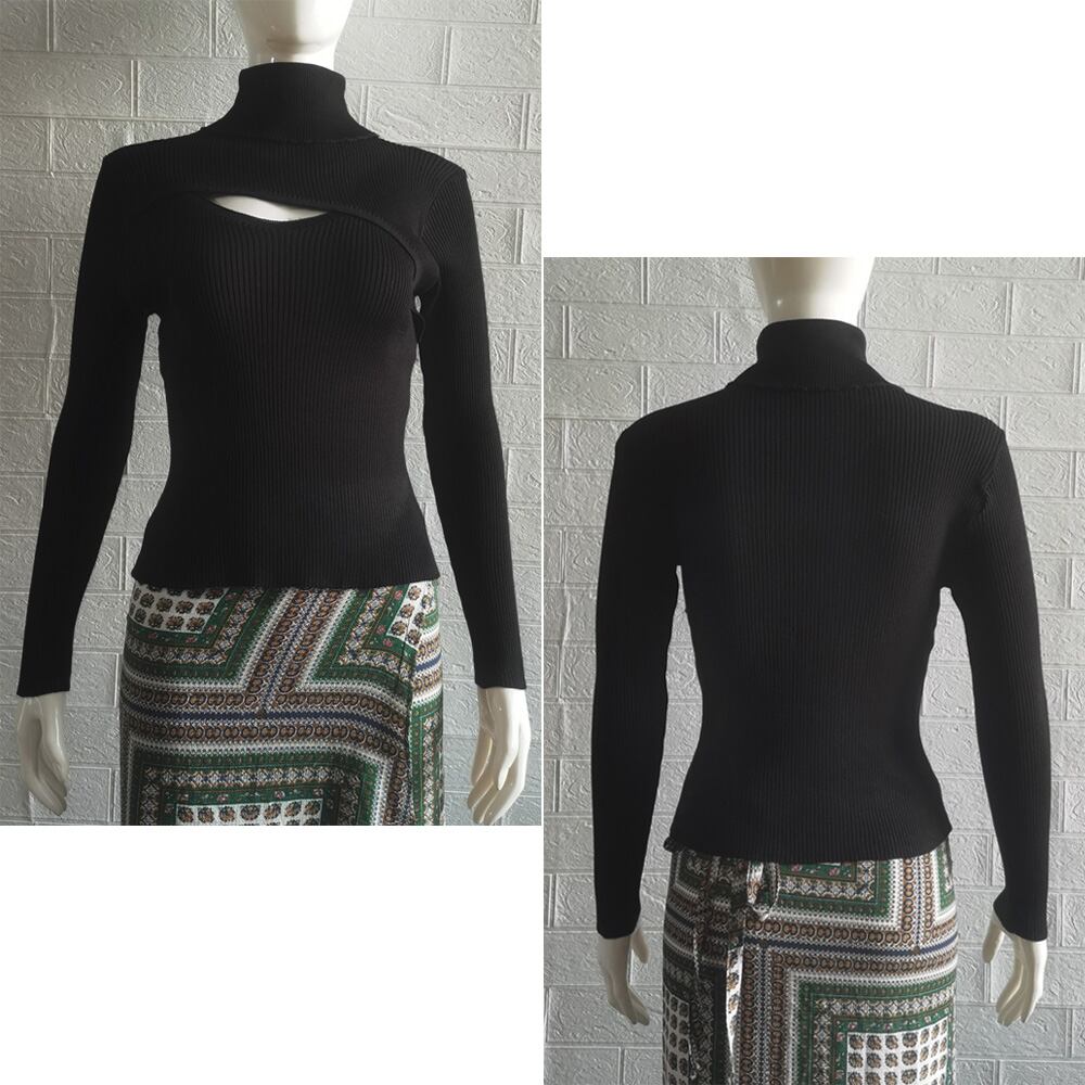 ニットトップス レディース ハイネック(胸開きタイプ)