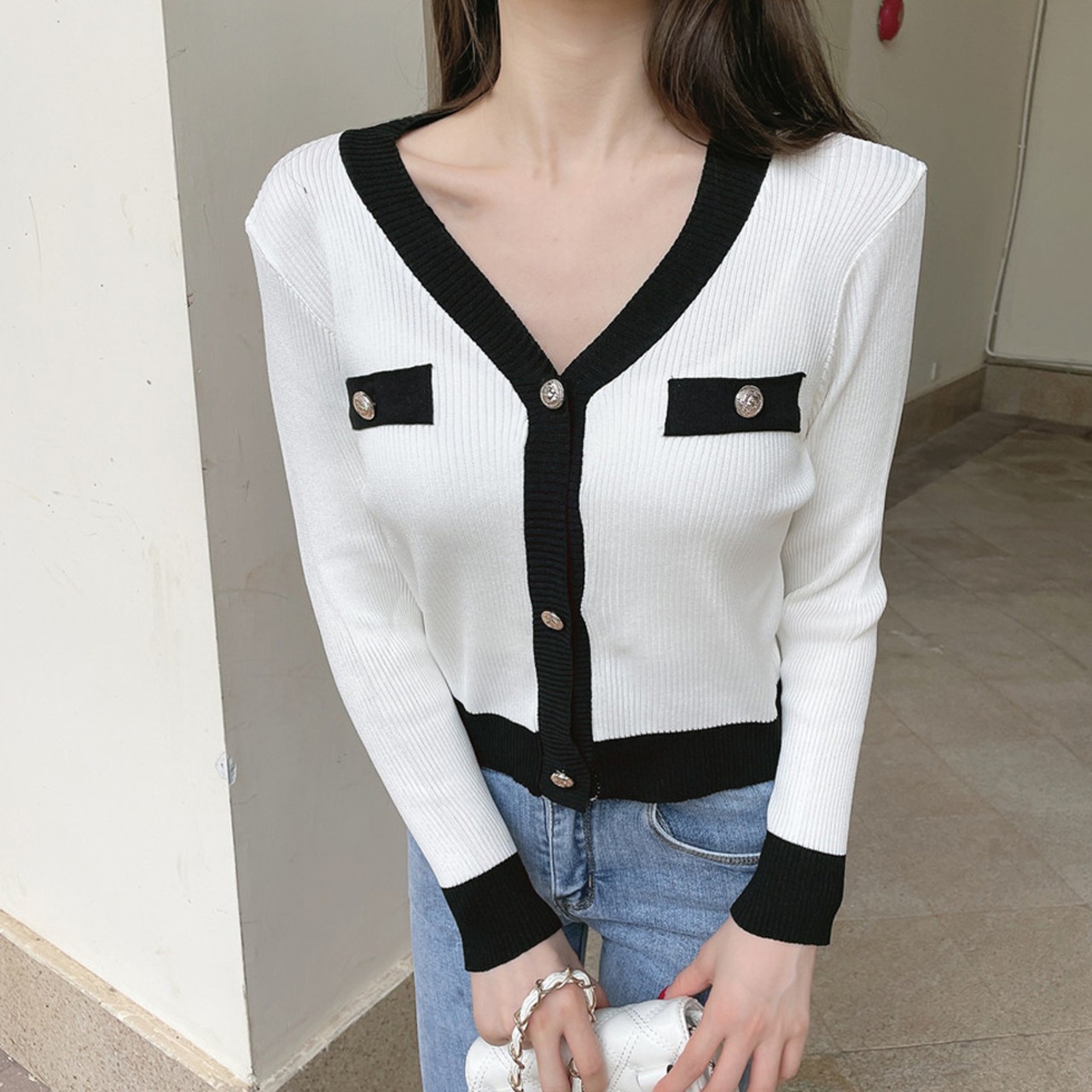 レディース Vネック 長袖ニット ショート丈 アウター リブ編み ニットセーター 韓国風 前開き トップス