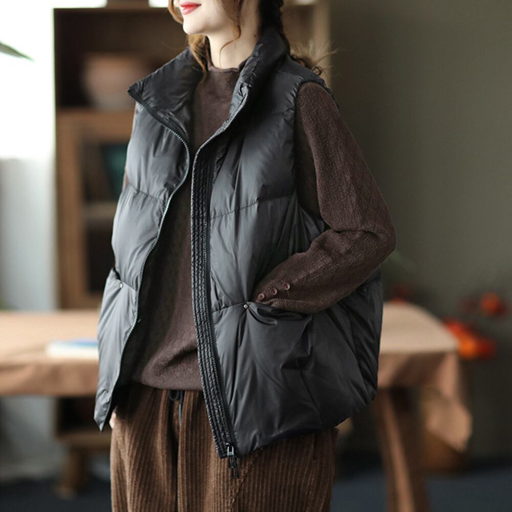 ノースリーブ ダウンジャケット 中綿ブルゾン ダブルファスナー ゆったり アウター 秋冬 ライトダウン インナーダウン