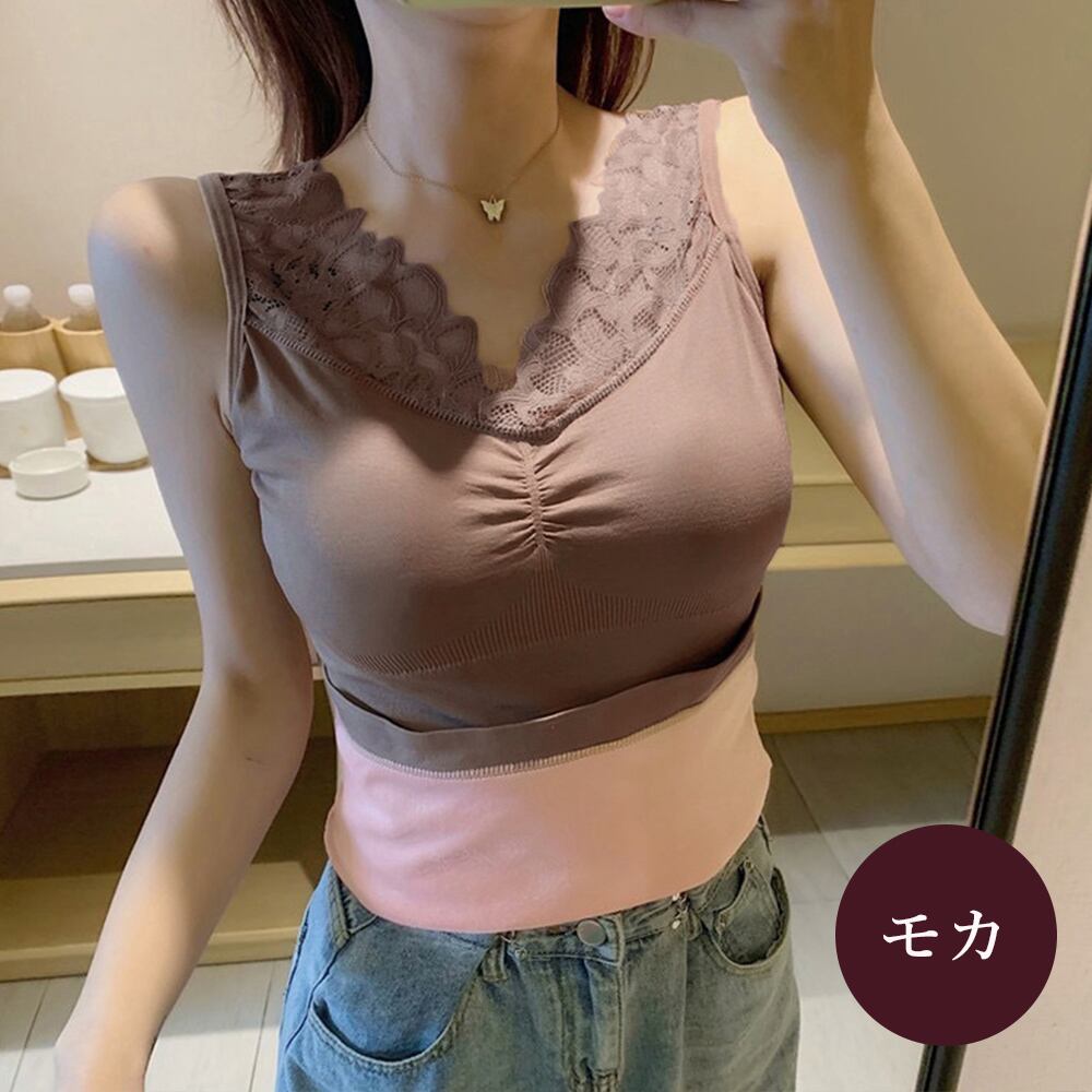 タンクトップ カップ付き ブラトップ セクシー 胸元 冷え対策 防寒下着 あったか 肌着 ノンワイヤー レーストップス