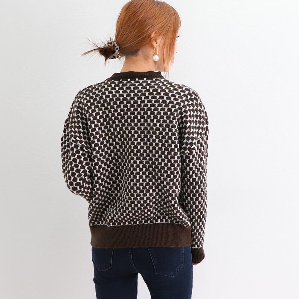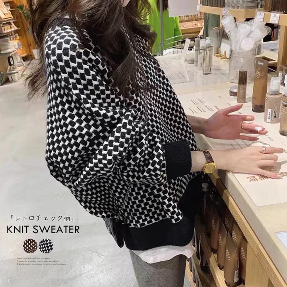 市松風ブロックチェック柄がレトロな雰囲気を醸し出すニットトップス