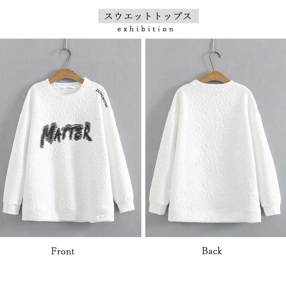 大人カジュアル エンボス加工 ロゴトレーナー 立体 ゆったりチュニック ロンティー 春秋冬 長袖 プルオーバー おしゃれ
