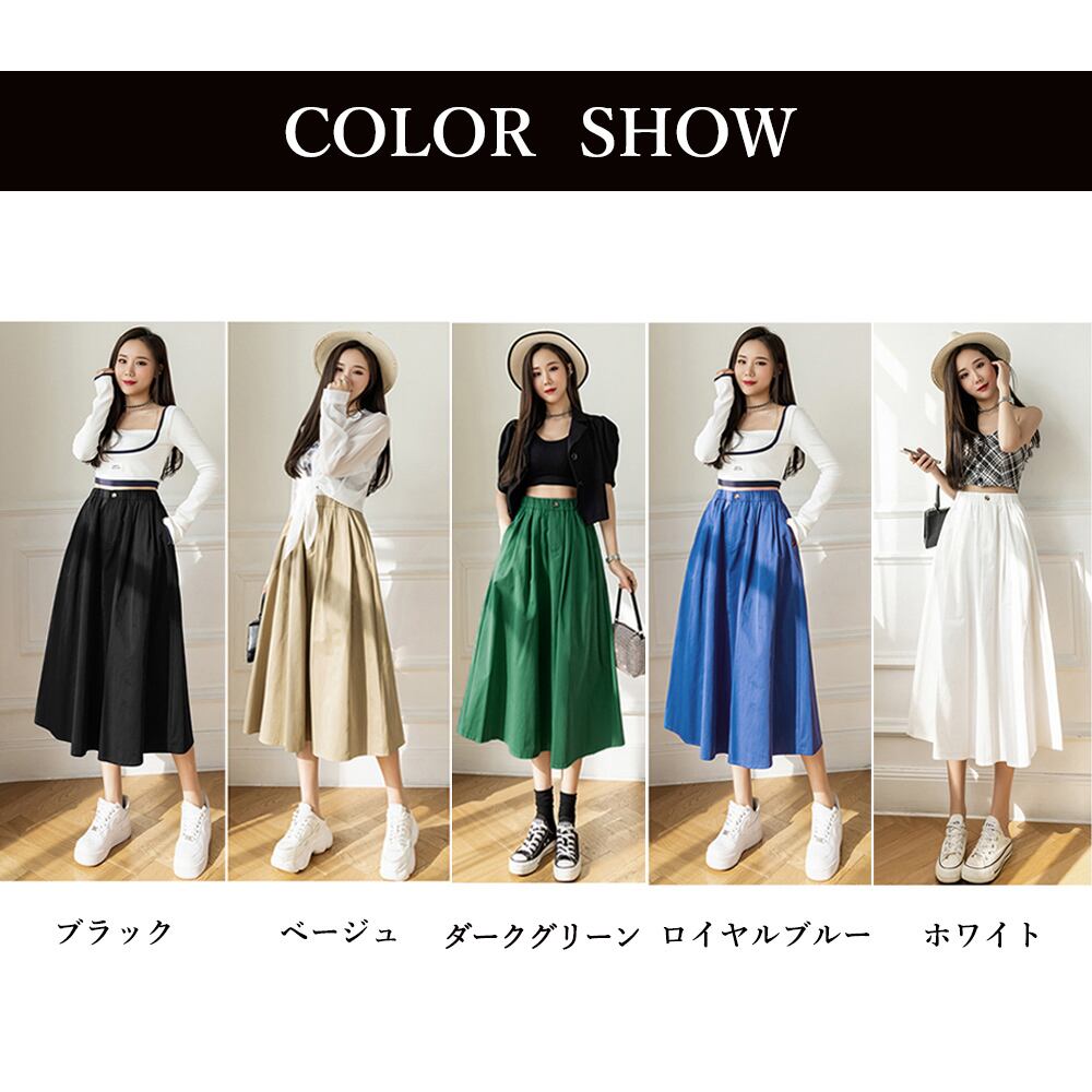 レディース おしゃれ カジュアルスカート ウエストゴム 大人可愛い 無地 Aラインスカート 体型カバー 韓国 着やせ