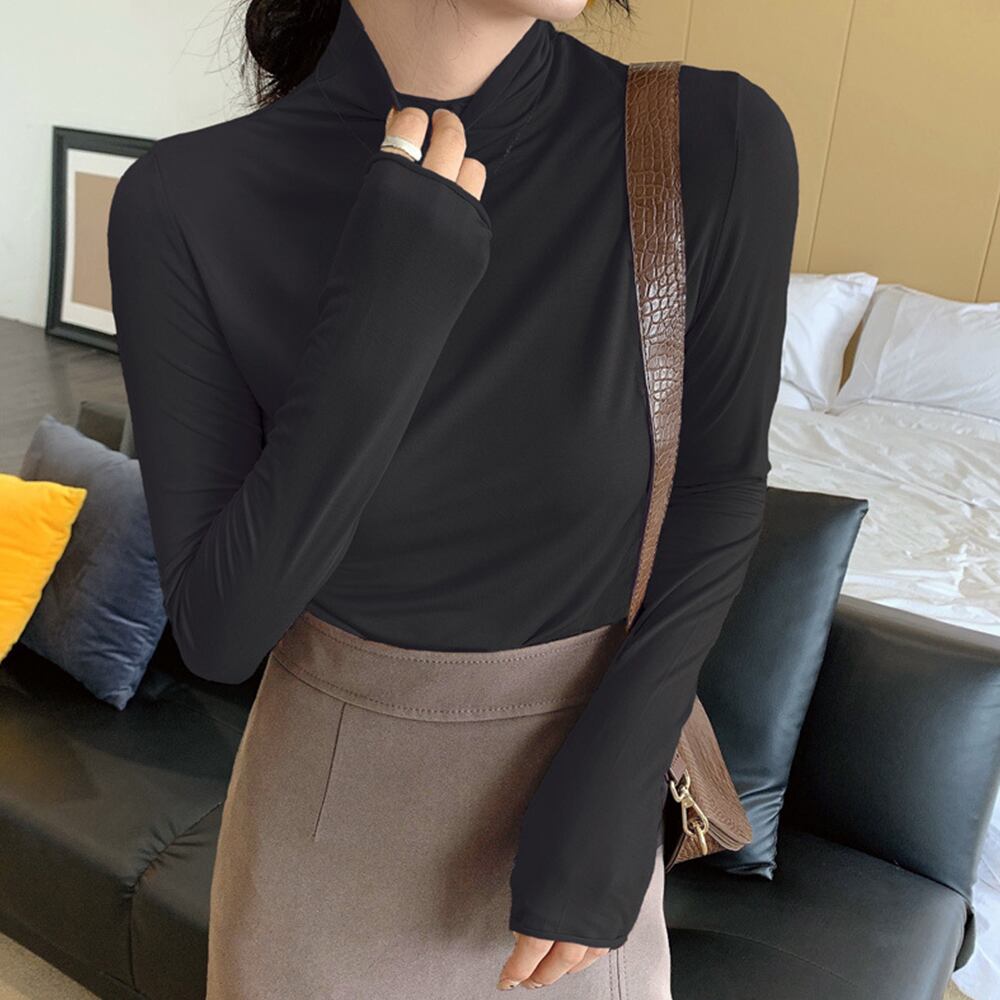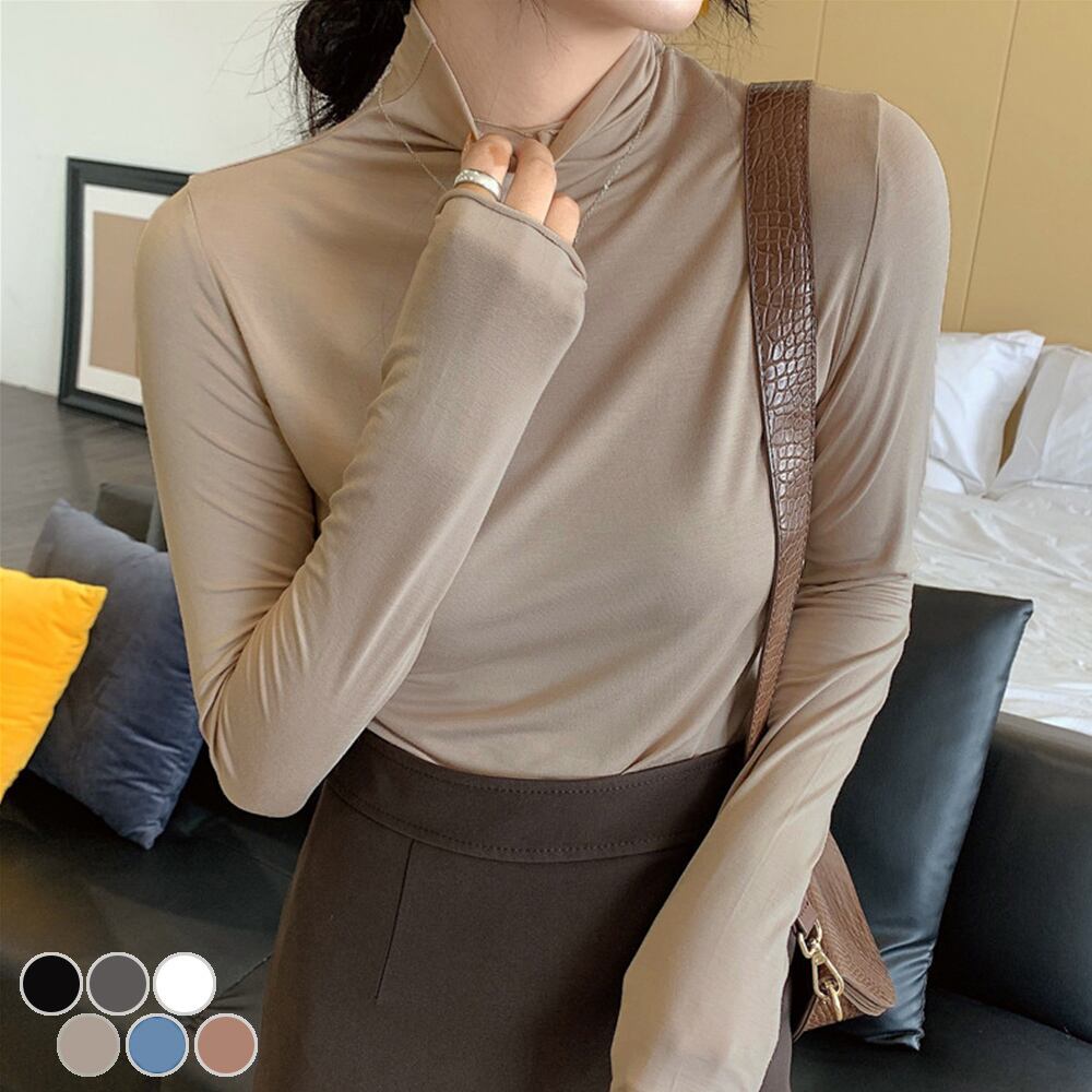 長袖 トップス 柔らか 重ね着 プチハイネック ベーシック 肌触りいい おしゃれ ファッション 春