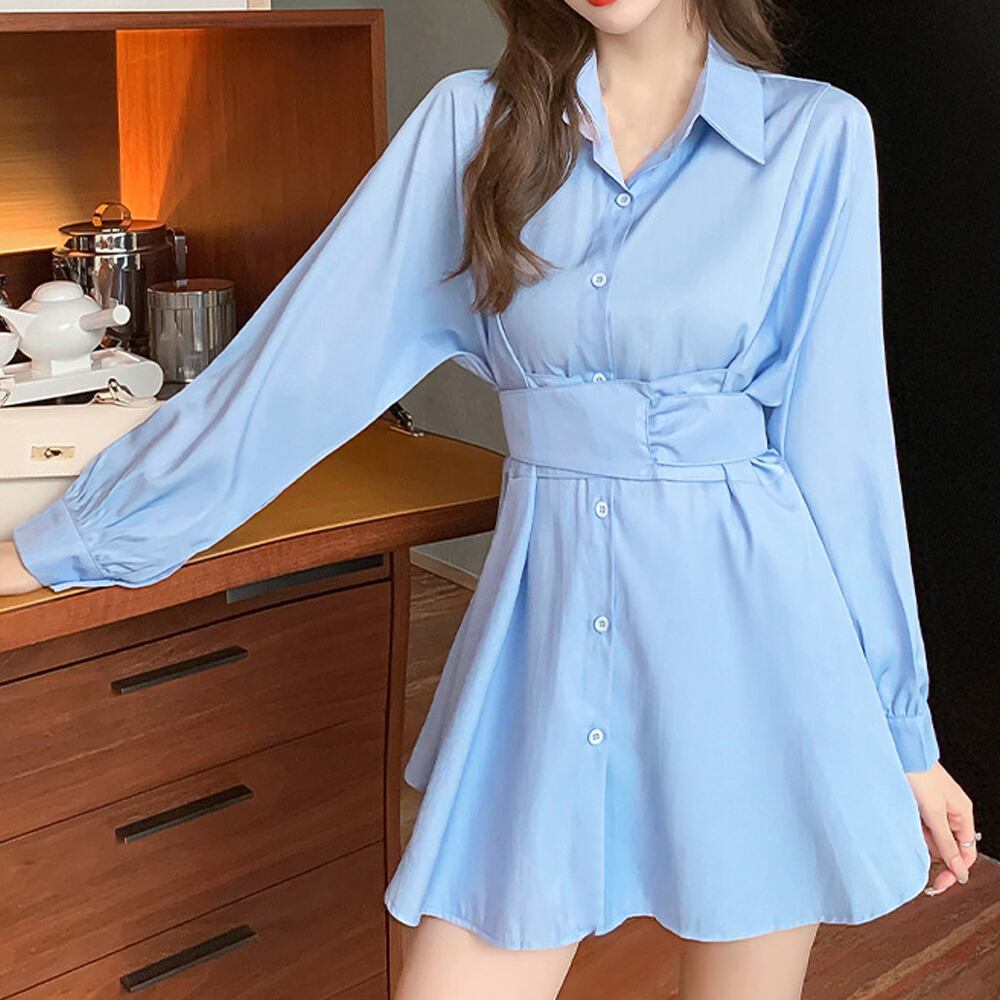 シャツブラウス レディース ミニシャツワンピース 韓国風 春夏長袖 ゆったり ロングシャツ 大人 ブラウス オフィス