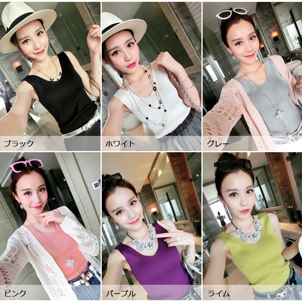 トップス レディース 春 タンクトップ Vネック サマーニット ノースリーブ
