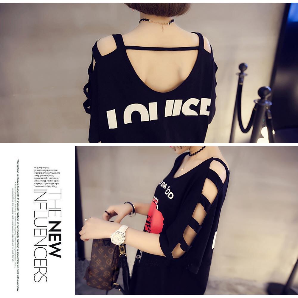 透かしカッティング仕様の5分袖で涼しげでちょっぴりセクシーなロングtシャツ
