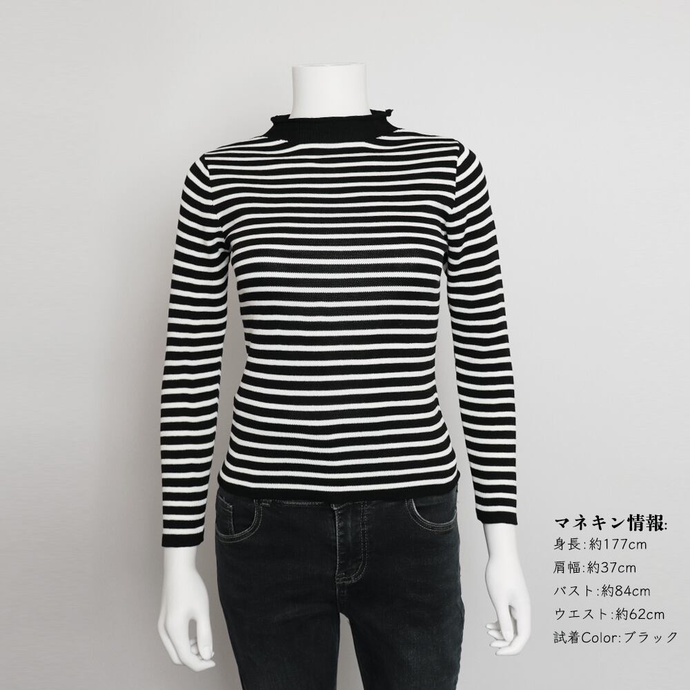 柔らかい素材感で着心地がよく、ボーダー柄ニットセーター