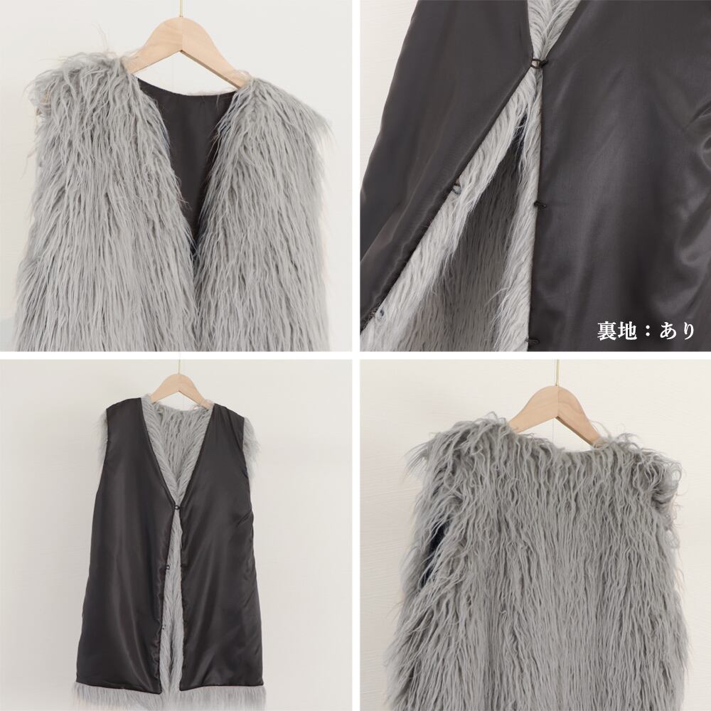 ボリューム シープファー風ベスト 体型カバー 重ね着ファージレフェミニンファージャケットゆったり ミドル丈ふんわり着やせ
