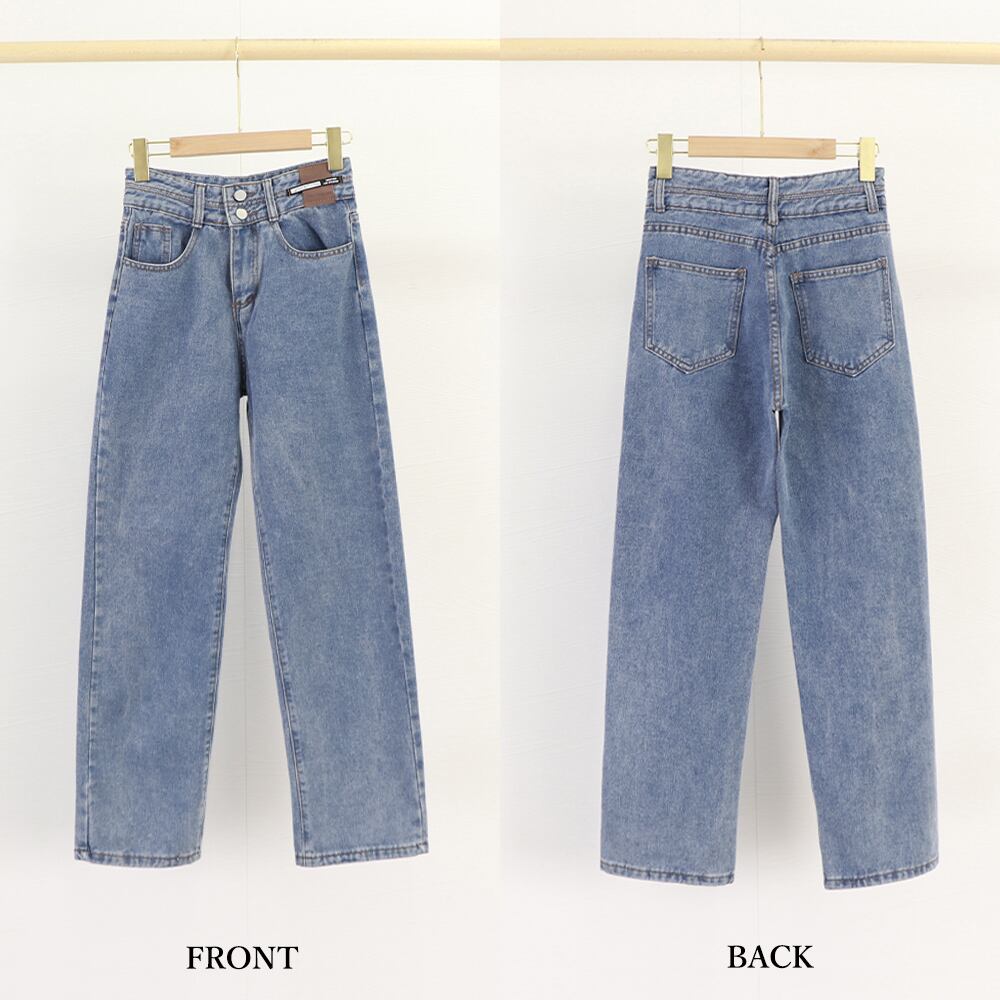 トレンドのハイウエスト+股上深めのデザインを取り入れたデニムストレートパンツ