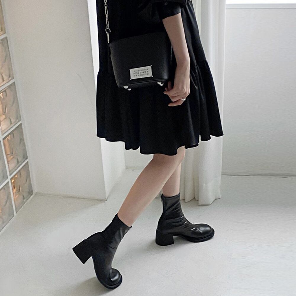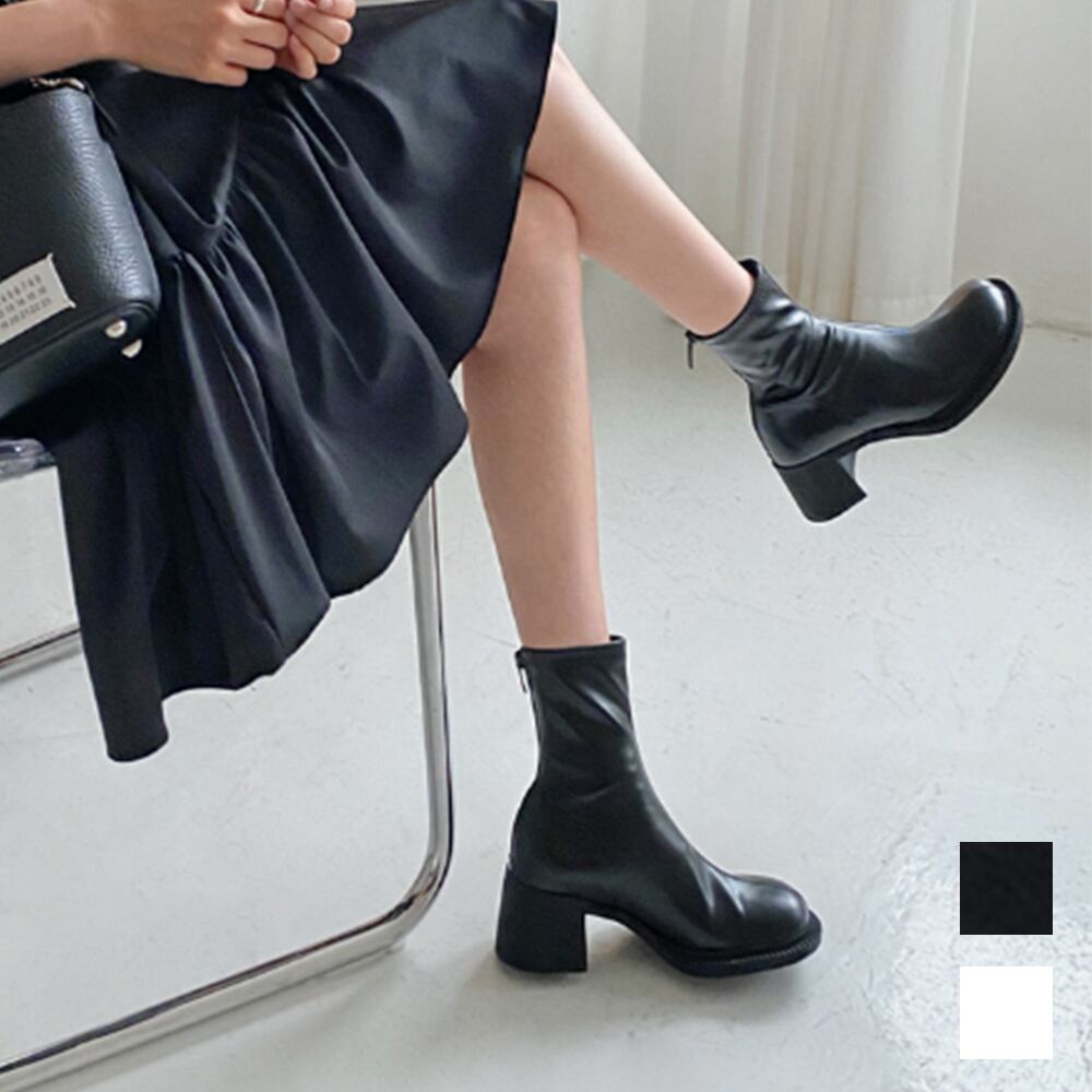 ソックス風ブーツ白 PUレザー黒ブーツ ブーティ歩きやすい