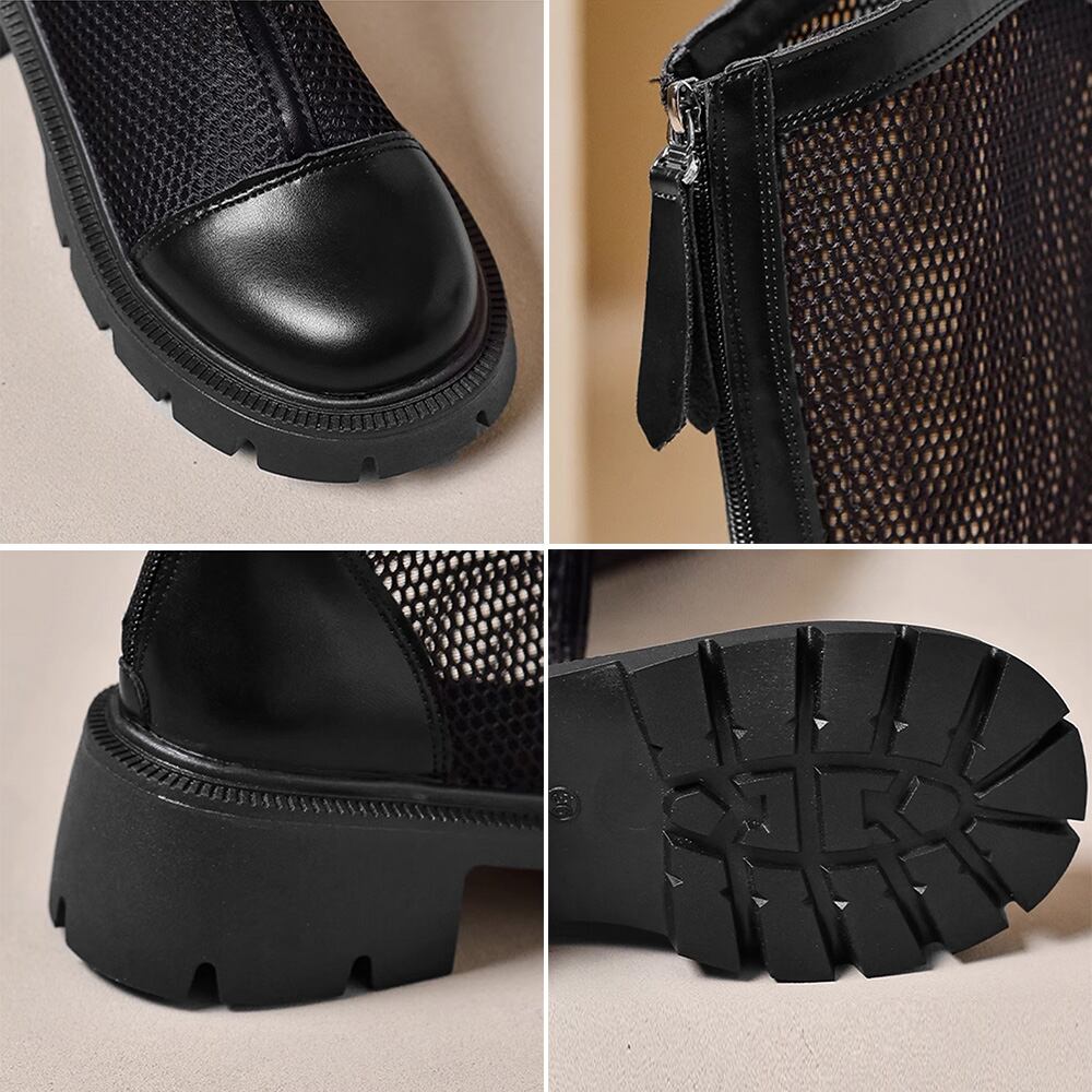 ニーハイブーツ夏靴 春秋透かしブーツ黒 オシャレシースルー