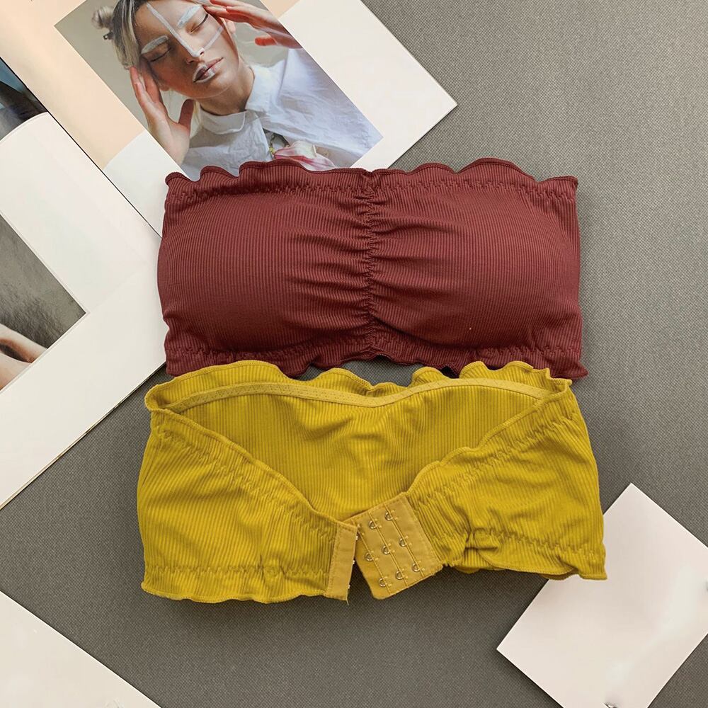 ギャザー チューブトップブラ ノンワイヤー オフショルダー ブラトップ カップ付き ストラップレス リブベアトップ