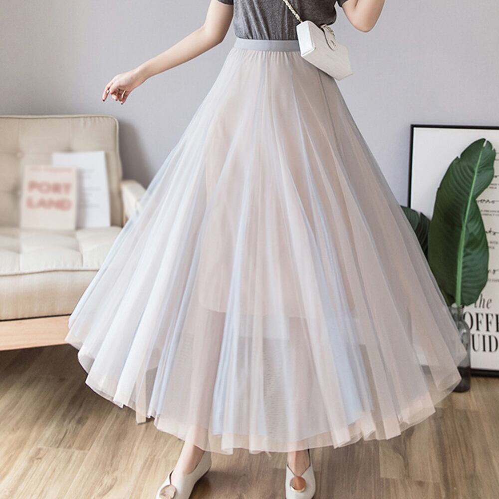 ロング丈スカート バイカラー フレア 春秋 3層チュール
