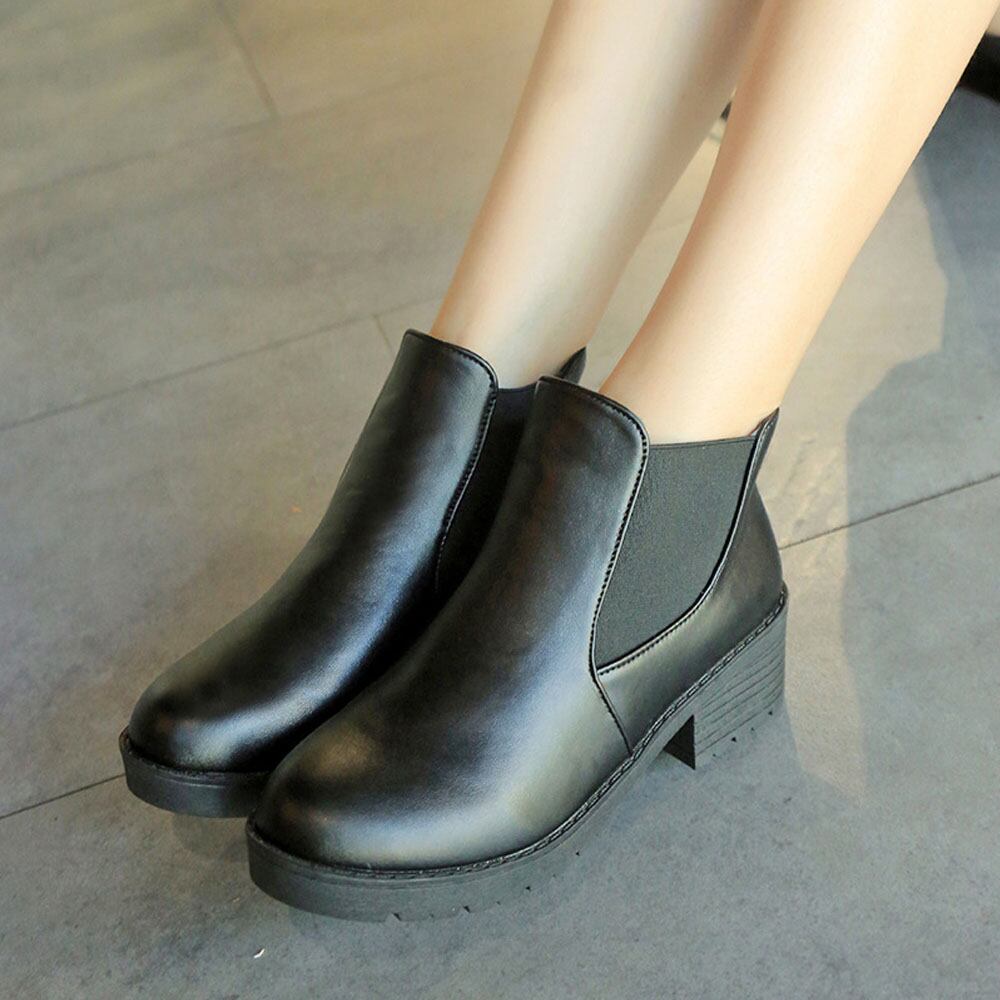 足首見せで女性らしいサイドゴア付きラウンドトゥショートブーツ