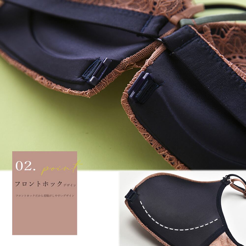 フロントホックだから着脱がしやすいデザインで、大人カワイイカラバリなので色違いでそろえてもOK◎
