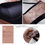 3/4カップ、フロントホック、肩紐取外し不可、ワイヤー:なし