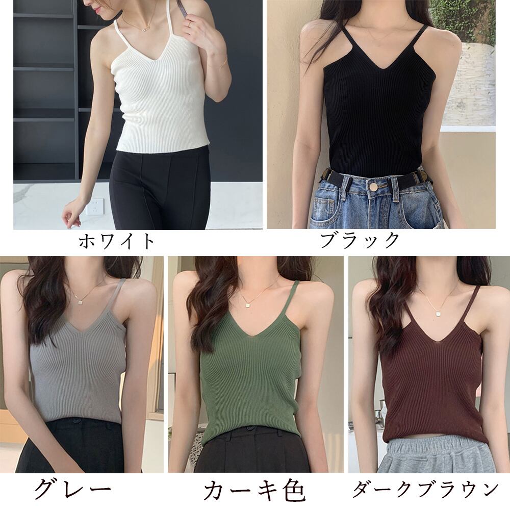 サマーニット きれいめ ニットキャミソール リブ編み 重ね着 インナーニット 伸縮性 着やせ 韓国風 肌見せ セクシー