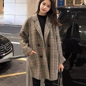 チェックの総柄がカジュアルながらもテーラードカラーがキチンと感を演出してくれて秋冬の大人カジュアルなコーデにぴったり