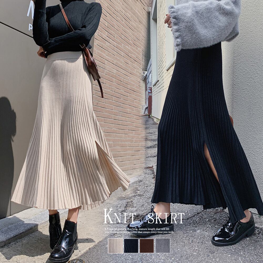 裾に向かって優雅に広がるニットプリーツスカート