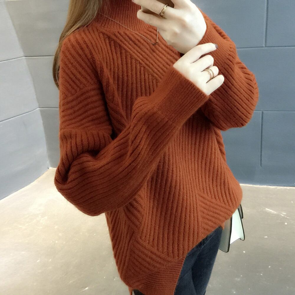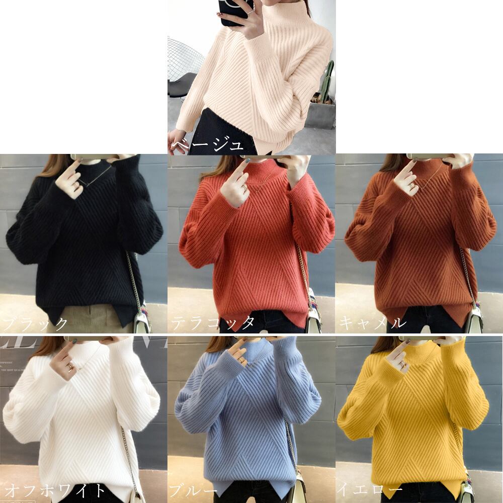 レディース ニットセーター ハイネック プルオーバー プチタートル リブ