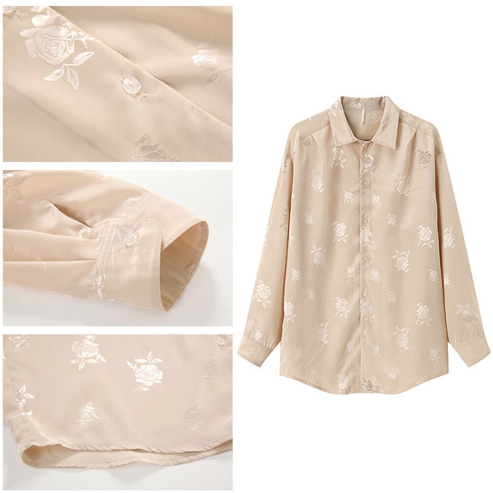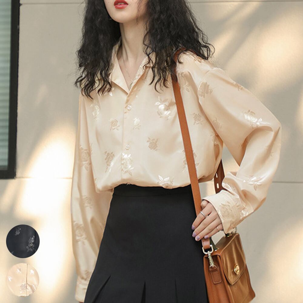 レトロフラワーシャツ レディース ゆったり 開襟シャツ 新作 プリント 韓国風