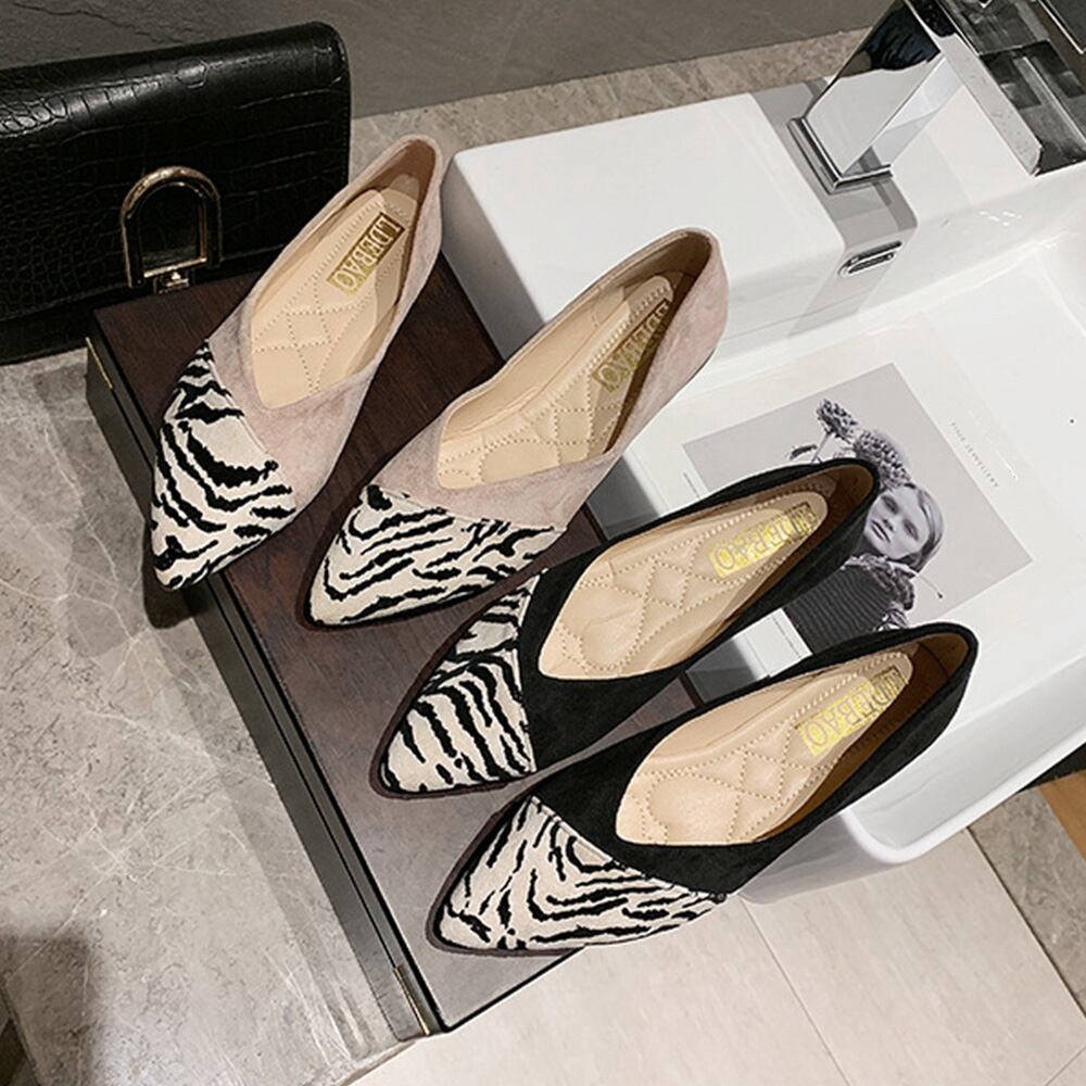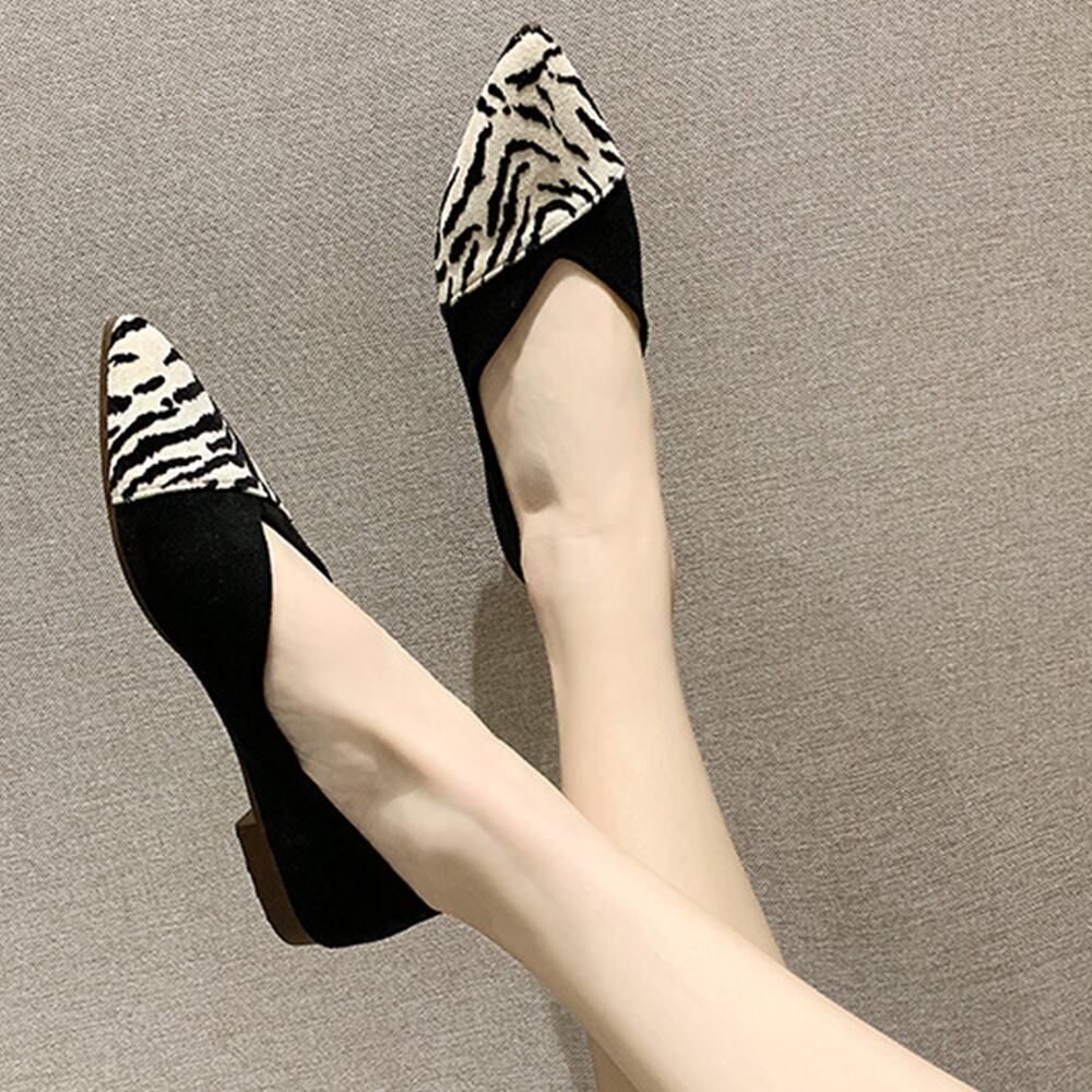 ポインテッドトゥ フラットシューズ 痛くない アニマル柄バレエシューズ パンプス 歩きやすい オフィス 春 韓国配色OL ゼブラ柄pumps カジュアルスエード