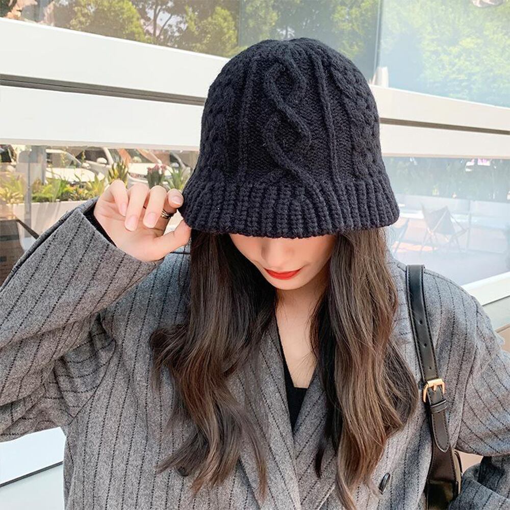 バケットハット チューリップハット 防寒性 秋冬 無地 暖かい 帽子 シンプル カジュアル おしゃれ 可愛い ブラック